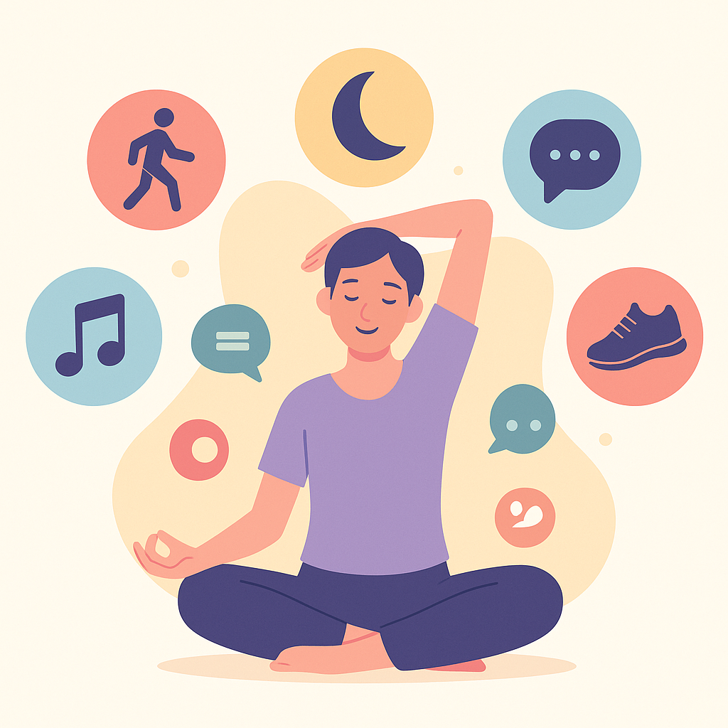 Practical stress relief strategies, mindfulness exercises, and quick relaxation practices.